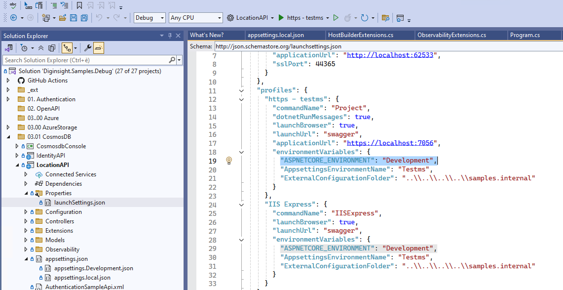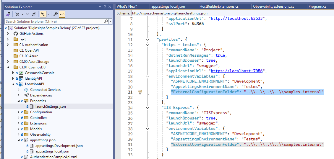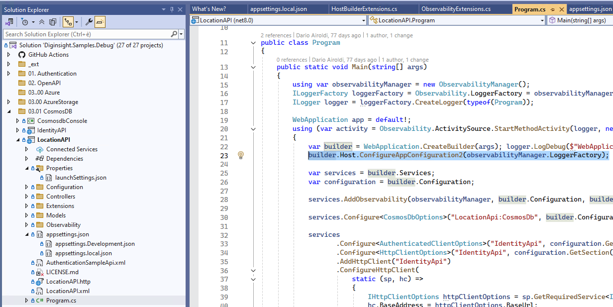 .Build();The image below shows diginsight sample LocationAPI that is loading configurations by means of builder.Host.ConfigureAppConfiguration2(); extension method.
