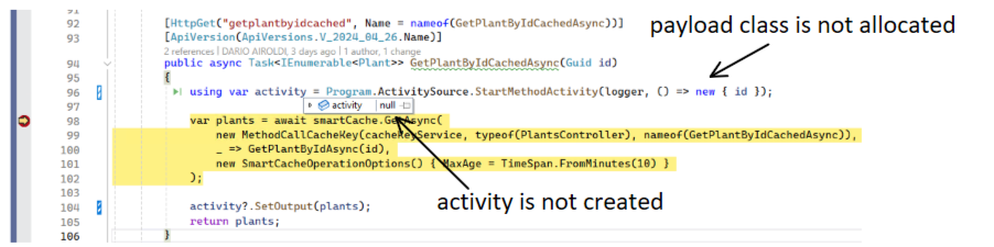 Also, if delegate notation is used to provide the StartMethodActivity payload, in case logging or payload rendering are disabled, the delegate is not used and the payload class is not allocated into the heap.