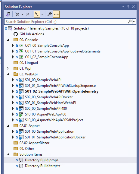 This article discusses how you can open, build and execute Diginsight telemetry.samples projects.