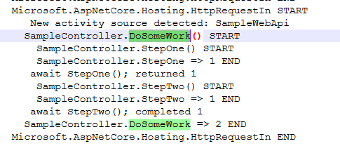 For simple types rendering is performed in automatic and intuitive way. the image below shows log for DoSomeWork, StepOne and StepTwo methods that return integer values.